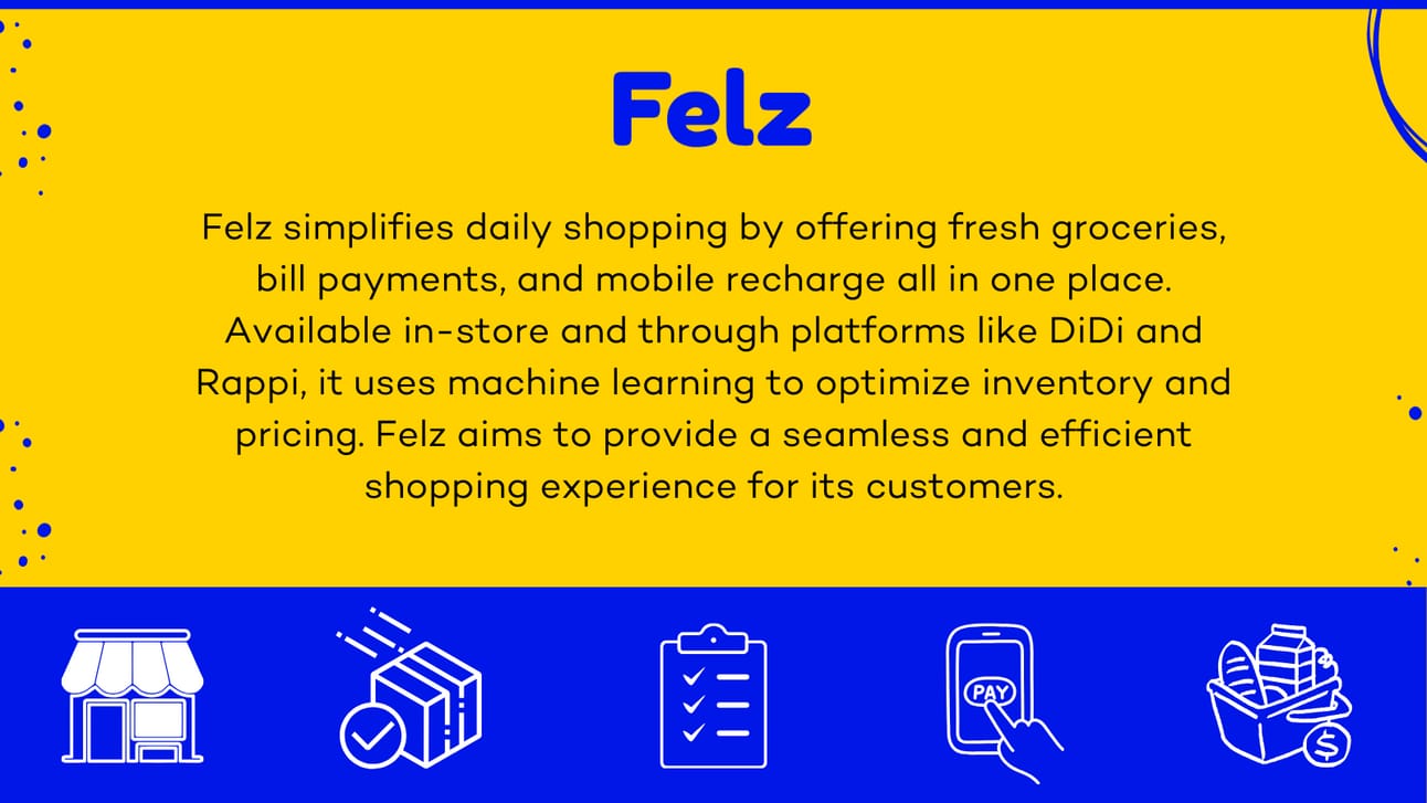 Felz is a network of "tienditas", small corner stores across Mexico, with a tech-driven approach. The Felz platform is designed to optimize operations for these small corner stores using Machine Learning model and best practices on retail ops, especially those in underserved communities.