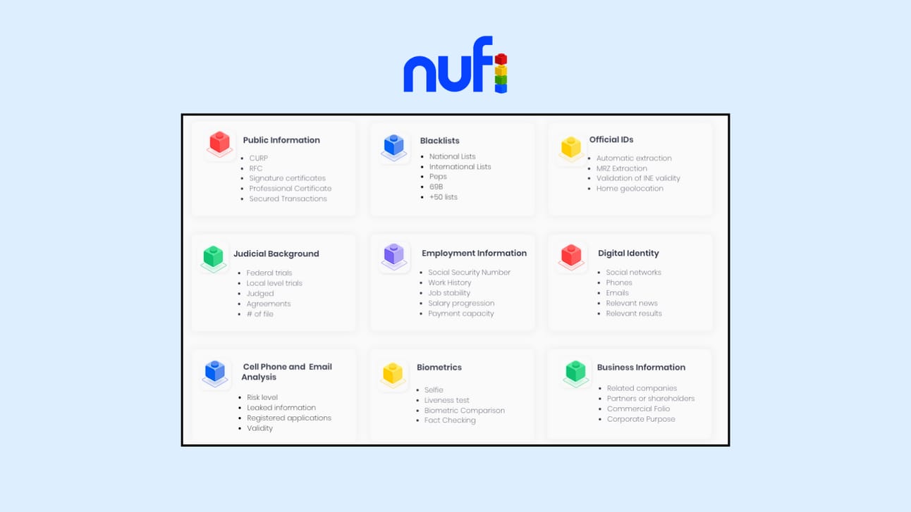 Nufi serves as an alternative identity bureau, enabling the verification of any individual or company’s information within Mexico.