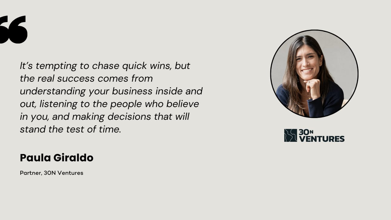 “We’re not just investors—we’re partners who take the time to understand what makes a business work. It’s about finding the right balance between ambition and realism.” - Paula Giraldo (Partner, 30N Ventures)